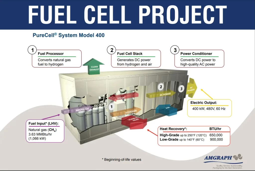 Enhancing energy efficiency by utilizing Class 1 renewables, EnergyStar-rated motors and drives, and generating electricity at the headquarters with two PureCell® System Model 400 fuel cells.
